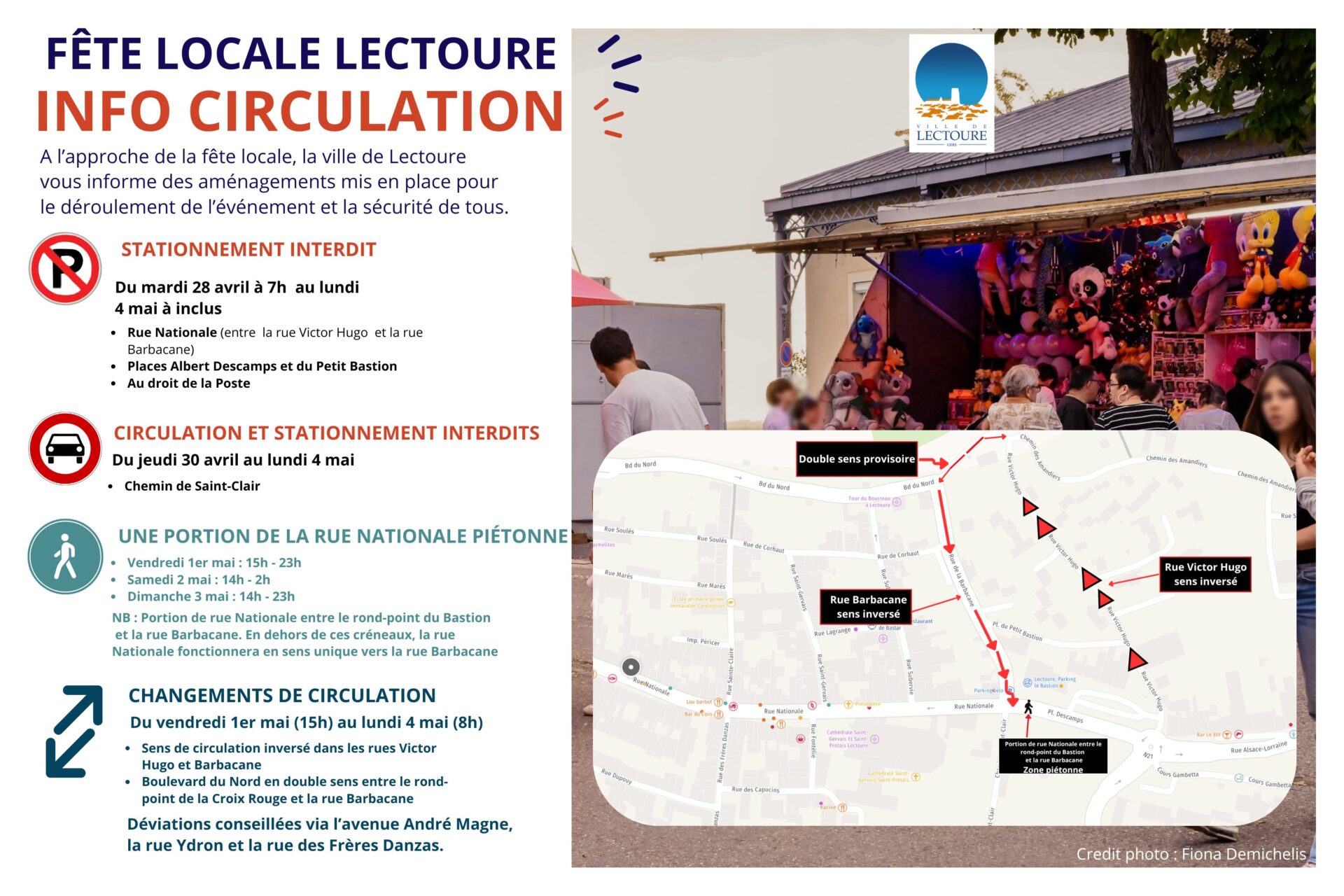 À l’occasion de la fête locale, la ville de Lectoure met en place un dispositif de circulation et de stationnement afin de sécuriser les animations et permettre l’installation des forains.