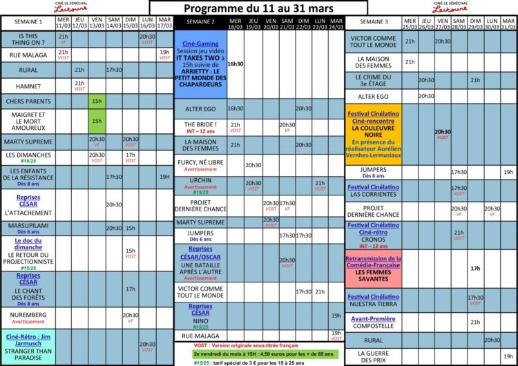Programme du 11 au 31 mars2026